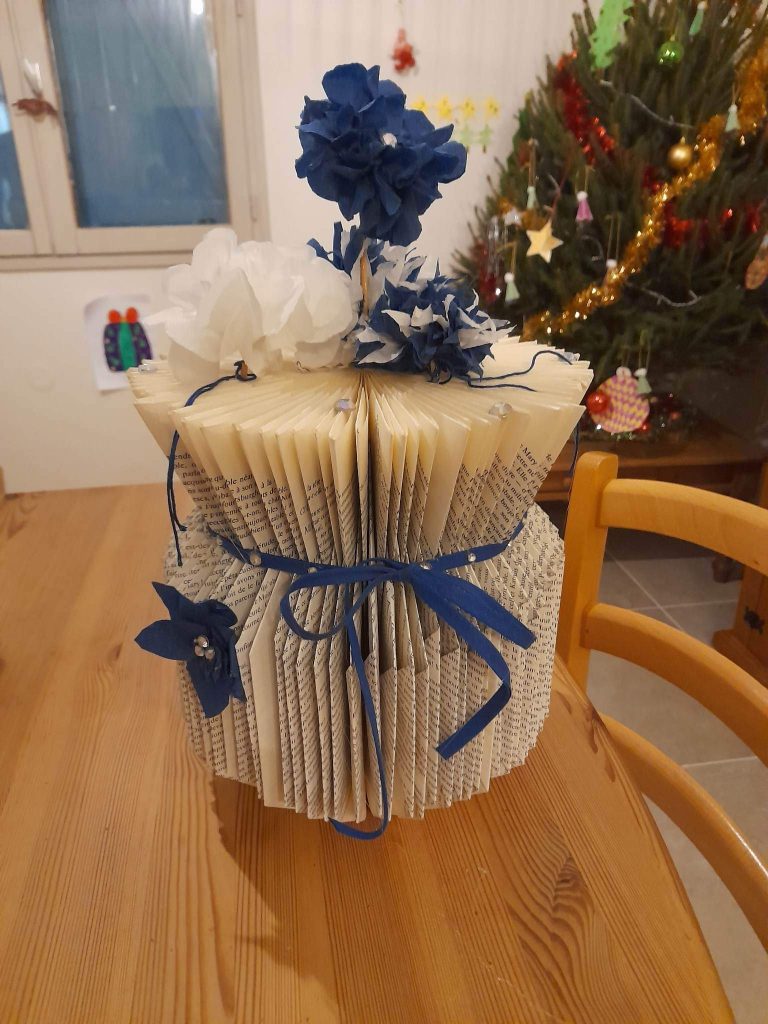 Le vase en livre et ses fleurs en papier